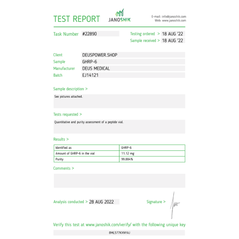 GHRP-6 Deus Medical (Growth Hormone-Releasing 6 Peptide) for Sale. Official Deus Medical Steroid and Peptides Shop. 100% safe shipping.